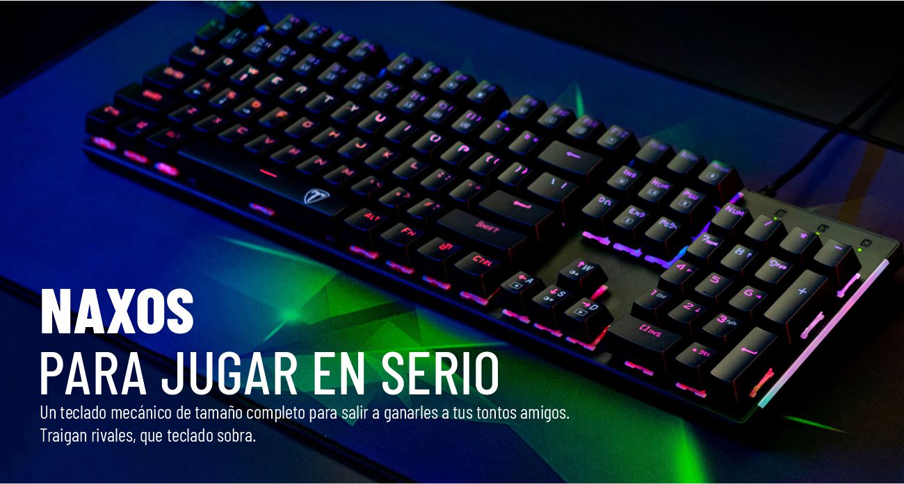 ¿Has probado alguna vez un teclado mecánico? La diferencia respecto de los de membrana es difícil de describir, pero es tan patente, tan indudable, tan superadora, que ya nunca querrás volver al viejo ejemplar de tu escritorio. Conoce el Naxos, un mecánico de tamaño completo diseñado para llevar tu juego a otro nivel.