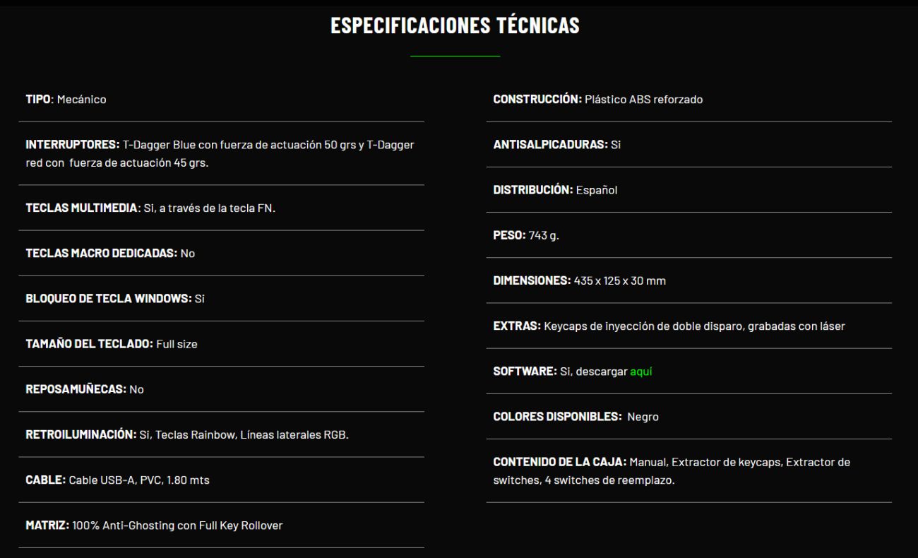 Construido en plástico ABS reforzado y con keycaps de doble inyección, antipolvo y antisalpicaduras, es un tanque diseñado para durar. Además, es 100% antighosting con full key rollover.
